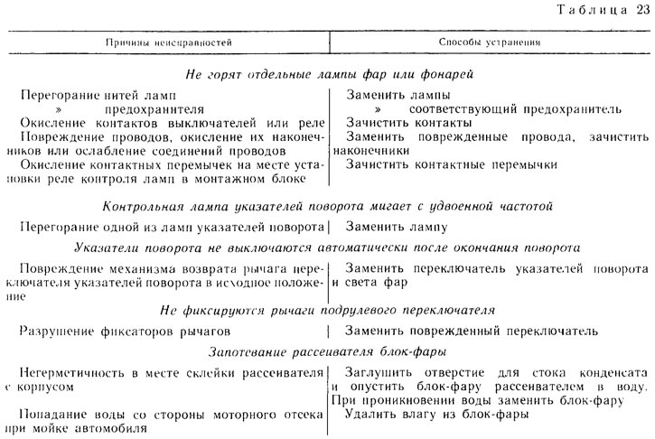 ВАЗ-2108 «Спутник» (1984-2003): Возможные неисправности освещения и световой сигнализации