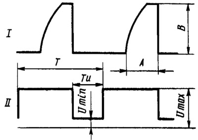 t - время накопления тока; В - максимальная величина тока; Т - период импульса; Ти - длительность импульса.