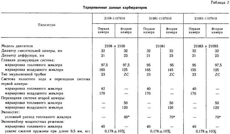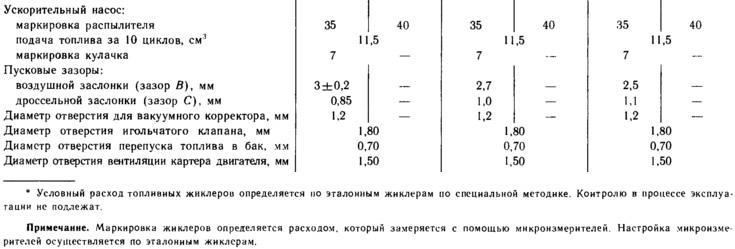 Все эти карбюраторы отличаются друг от друга лишь отдельными параметрами тарировочных данных (см. табл. 2).