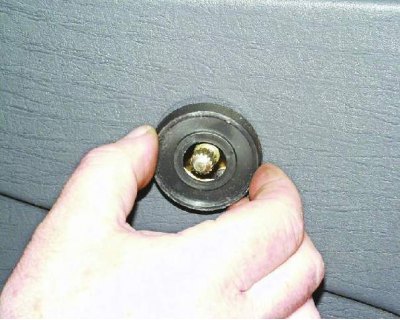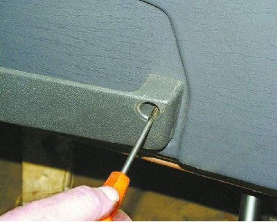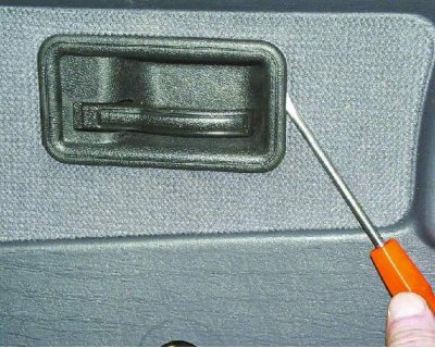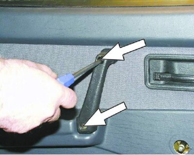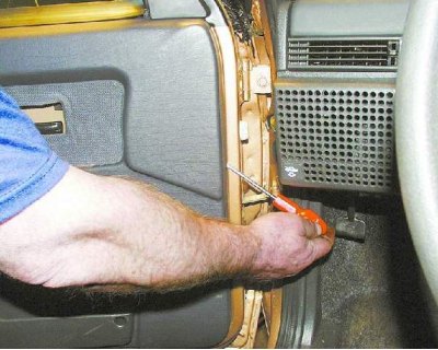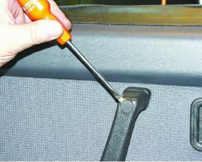 11. С помощью отвертки отожмите обивку так, чтобы пистоны крепления вышли из отверстий в двери (см. примечание).