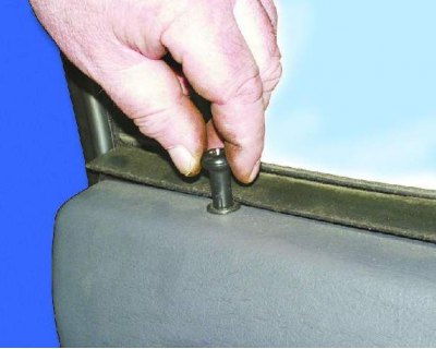 12. Чтобы вывести из отверстий верхние пистоны крепления обивки, отогните край уплотнителя.