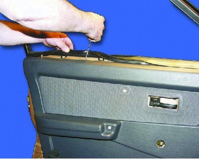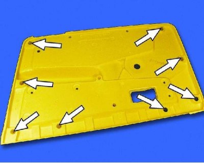 13. Снимите обивку двери. Установка обивки производится в порядке, обратном снятию.