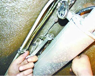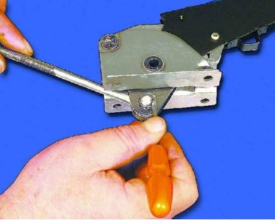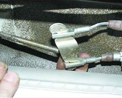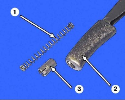 Рычаг стояночного тормоза неразборной конструкции. Заменить в нем можно только пружину собачки.