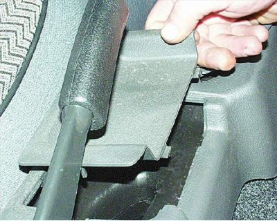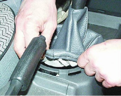 4. Снимите защитный чехол рычага переключения передач с облицовки туннеля пола.