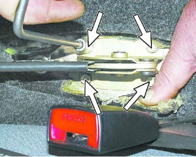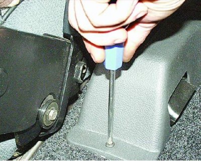 6. Отверните винт крепления облицовки туннеля пола в задней части.
