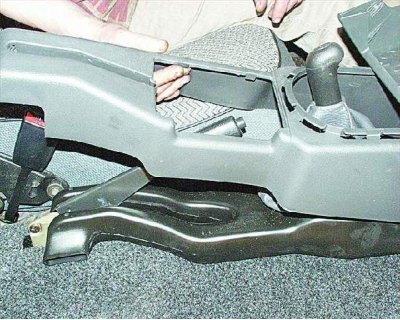 7. Снимите облицовку туннеля пола, сдвинув ее назад.