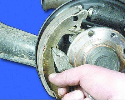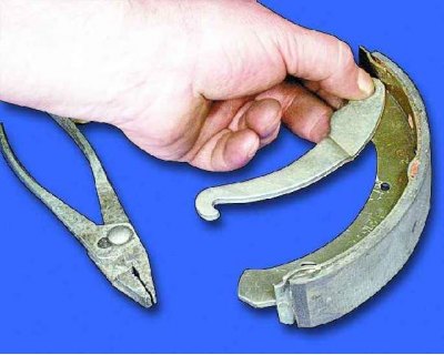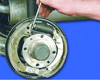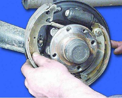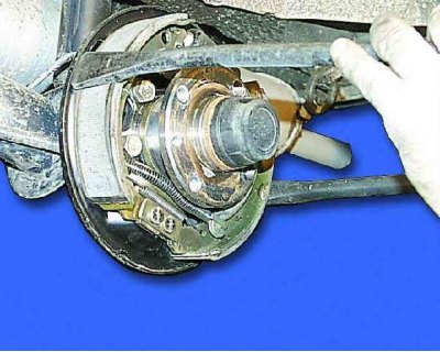17. Сведите перед установкой барабана тормозные колодки двумя монтировками и установите барабан в порядке, обратном снятию.