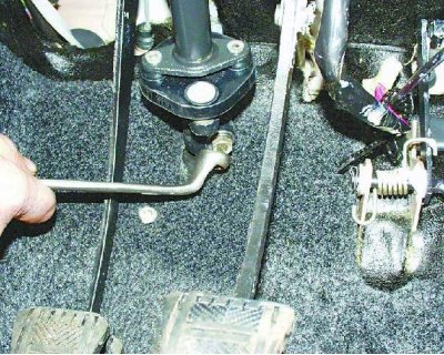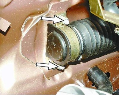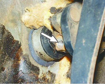 1. Изнутри салона отверните стяжной болт фланца соединительной муфты вала рулевого управления.