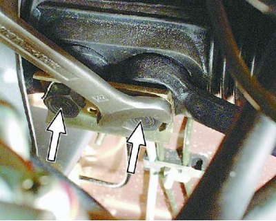 8. Отверните другой болт крепления и отсоедините вторую тягу. Заверните болт.