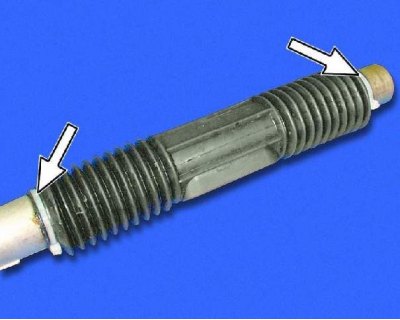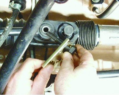 3. Расконтрите болты крепления обеих рулевых тяг к рулевому механизму, отогнув отверткой концы стопорной пластины.