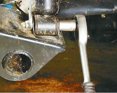4. Отверните гайку нижнего крепления стойки и выньте болт.