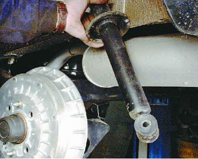 Примечание. Шток амортизатора легко вытянуть, если навернуть на него гайку.