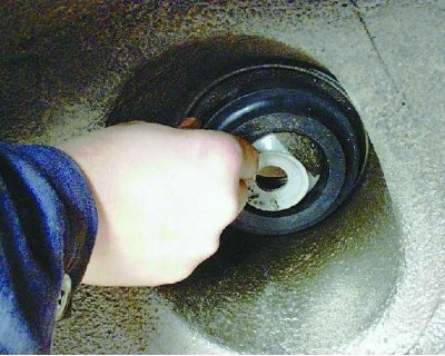 9. Снимите изолирующую прокладку с верхней опорной чашки пружины (если она не осталась на пружине).