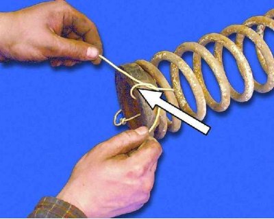 12. Установите на верхний виток пружины изолирующую прокладку и закрепите ее от смещения с помощью тонкой веревки, изоленты и т.п.