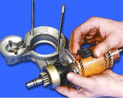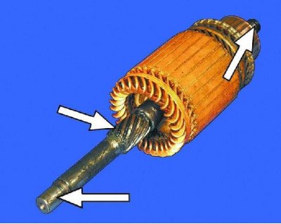 3. Смажьте моторным маслом шлицы и цапфы вала якоря...