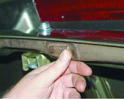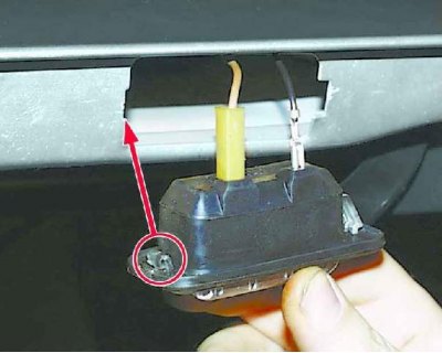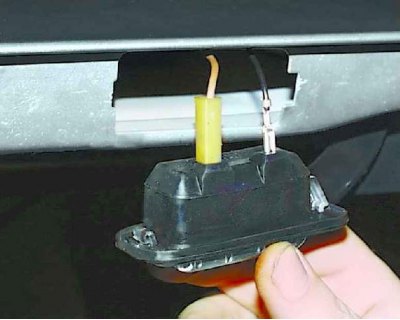 4. При установке подсоедините провода и введите в зацепление с крышкой багажника крючок корпуса фонаря.