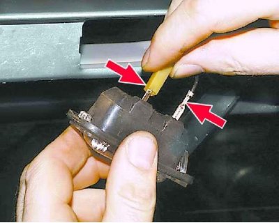 3. Отсоедините колодку с проводами и провод "массы" от контактов фонаря.