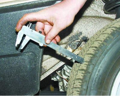 7. Измерьте штангенциркулем остаточную глубину протектора. Если глубина протектора 1,6 мм или меньше, замените шину.