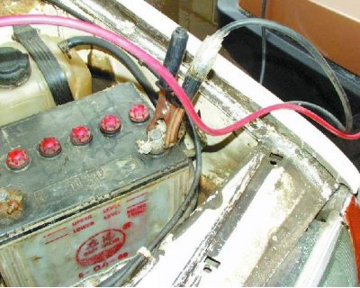 2. Подсоедините другой конец красного провода к клемме "+" аккумуляторной батареи вашего автомобиля.