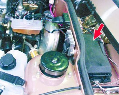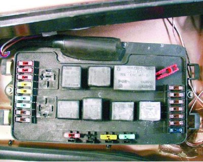 11. С левой стороны под панелью приборов на проводах установлен дополнительный предохранитель на 8 А, защищающий цепь задних противотуманных фонарей.