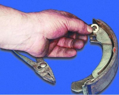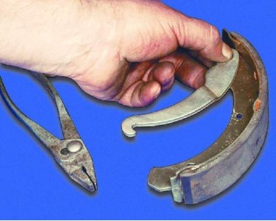 13. Проверьте состояние фрикционных накладок тормозных колодок. Замените их в следующих случаях: а) толщина накладок менее 1,5 мм; б) поверхность накладок замаслена; в) фрикционная накладка непрочно соединена с основанием. Накладки не должны иметь глубоких бороздок и сколов.