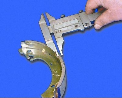 Минимально допустимая толщина фрикционных накладок колодок — 1,5 мм. При износе накладок до 1,5 мм и более замените комплекты колодок.