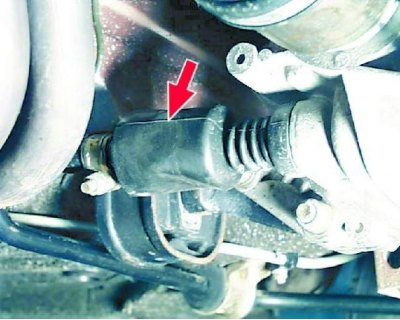 1. Осмотрите защитный чехол шарнира тяги переключения передач.