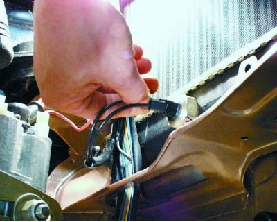 12. Наклоните радиатор в сторону двигателя и выньте его из моторного отсека.
