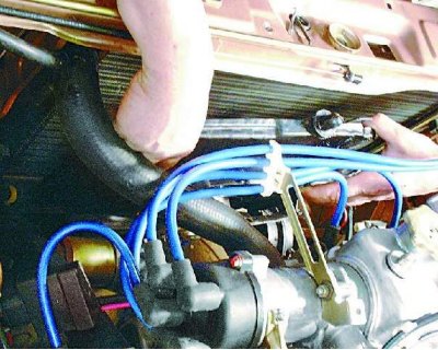10. Ослабьте хомуты крепления и отсоедините два верхних шланга от радиатора.