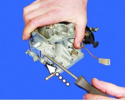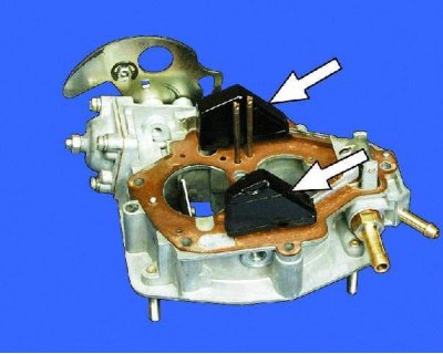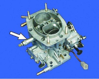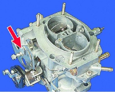 5. Если снимался рычаг привода воздушной заслонки, перед заворачиванием оси рычага нанесите на ее торец и верхние витки резьбы герметик типа УГ-9.