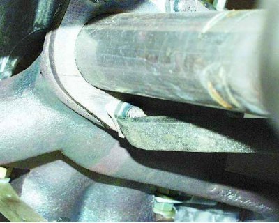 3. Отогните края стопорных пластин гаек крепления приемной трубы к выпускному коллектору.