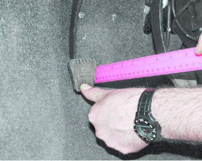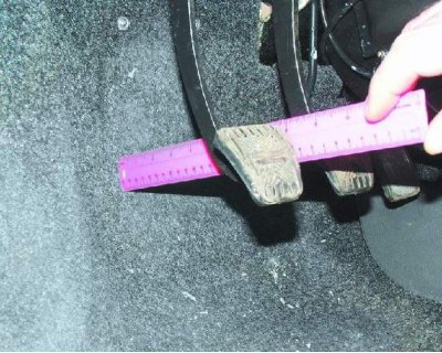 1. Измерьте полный ход педали сцепления. Для этого уприте педаль в коврик пола и установите линейку.