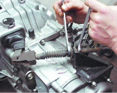 Регулировка хода педали осуществляется изменением длины оболочки троса между кронштейном на коробке передач и обоймой в щите передка с помощью регулировочных гаек.