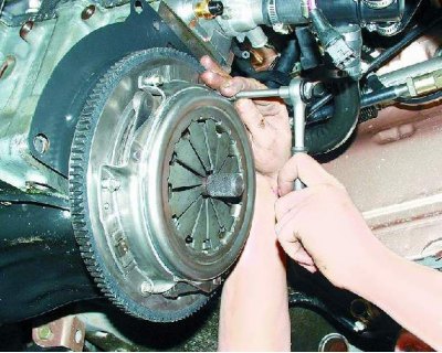 Примечание 2. Снять сцепление можно и без оправки, но при этом надо придерживать ведомый диск – он может выпасть из кожуха сцепления. Оправку можно изготовить по размерам первичного вала или использовать вместо нее старый первичный вал.