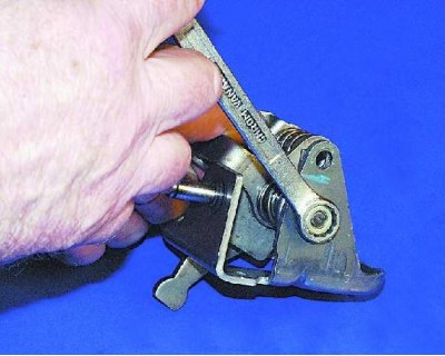 2. Выньте направляющую ось блокировочных скоб и снимите пружину.