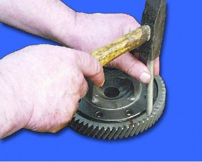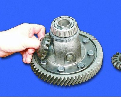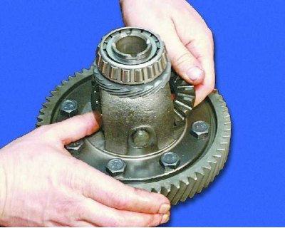 6. Отверните болты крепления ведомой шестерни к корпусу дифференциала.