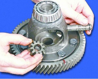 1. Выньте одну полуосевую шестерню из корпуса дифференциала, повернув ее на 90° вокруг оси сателлитов.
