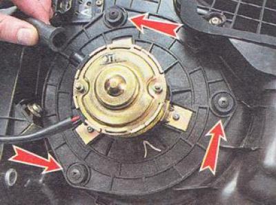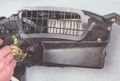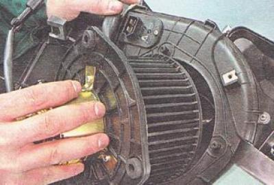 4. Вынимаем электровентилятор из корпуса отопителя.
