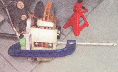 5. Утапливаем выдвинутый поршень обратно в тормозной цилиндр при помощи струбцины.