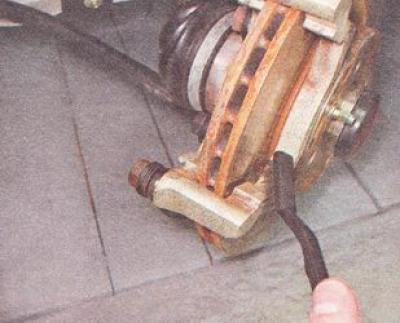 7. Вынимаем тормозной шланг из кронштейна стойки.