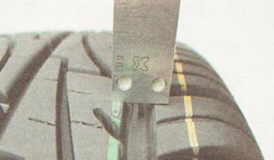 4. Остаточную высоту рисунка протектора определяем на глаз или при помощи глубиномера штангенциркуля.