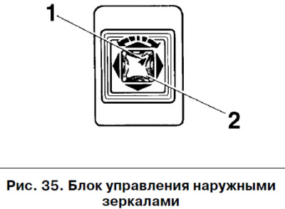 В вариантном исполнении на автомобиль устанавливается блок управления наружными зеркалами, показанный на рис. 35.