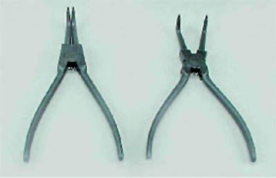 8. Специальные щипцы для снятия стопорных колец. Существует два типа таких щипцов: сдвижные для извлечения стопорных колец из отверстий, и раздвижные - для снятия стопорных колец с валов, осей, тяг. Также щипцы бывают с прямыми и изогнутыми губками.
