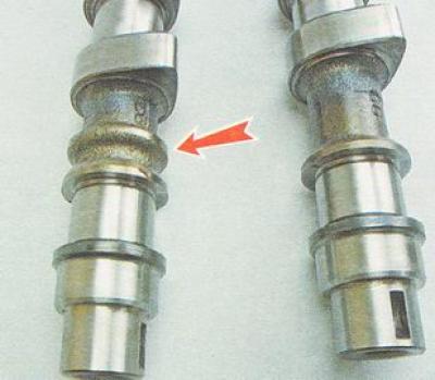 10. Осматриваем распредвалы. На шейках и кулачках распредвала не должны наблюдаться следы сильного износа, царапины, трещины, следы наволакивания металла.