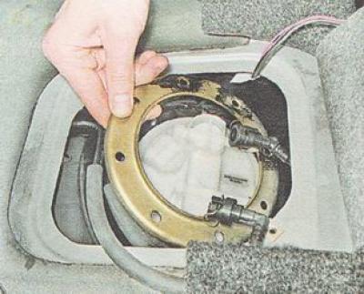 Соединение топливного модуля с бензобаком уплотнено резиновой прокладкой.