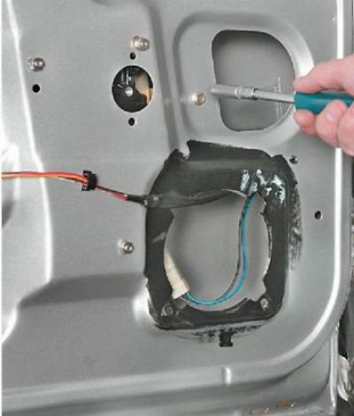 6. Выдвинув стекло наружу, извлекаем его из двери.