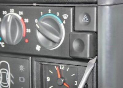 4. Через открывшиеся проемы сжимаем пружинные фиксаторы, расположенные с боков блока управления, и извлекаем блок из панели приборов.