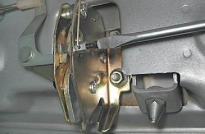 2. Шлицевой отверткой отворачиваем винт, фиксирующий тягу привода замка.