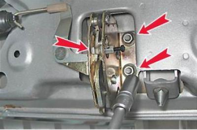 3. Торцовым ключом на 10 мм с глубокой головкой отворачиваем три гайки крепления замка.