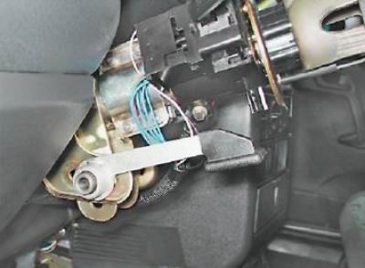 6. Проверяем надежность фиксации рулевой колонки рычагом.
